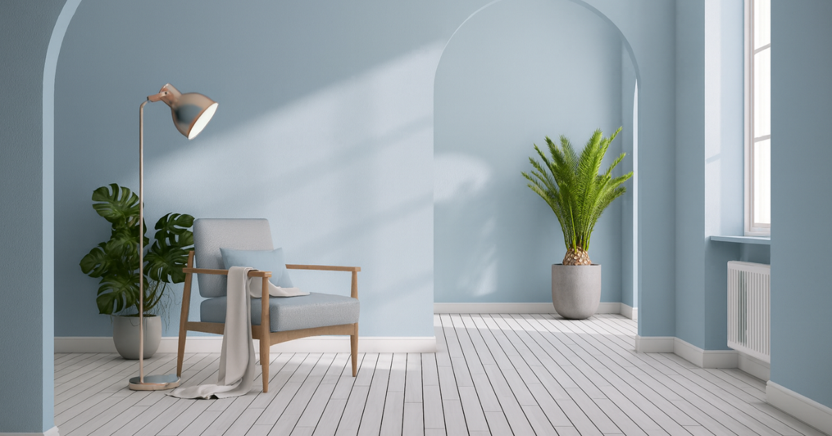 Breezy: This pale blue reflects light beautifully, helping rooms feel open, fresh, and full of air. It is an ideal choice for spaces that crave brightness without stark white.