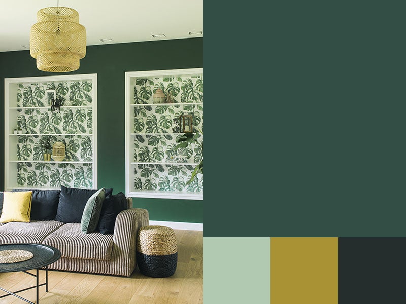 Emerald pairs perfectly with many color pallets, from mustard or gold accents to deeper green hues to really explore that depth of color that you find in nature. Natural woods also looks at home next to an emerald backdrop, to really explore that forest aesthetic.
